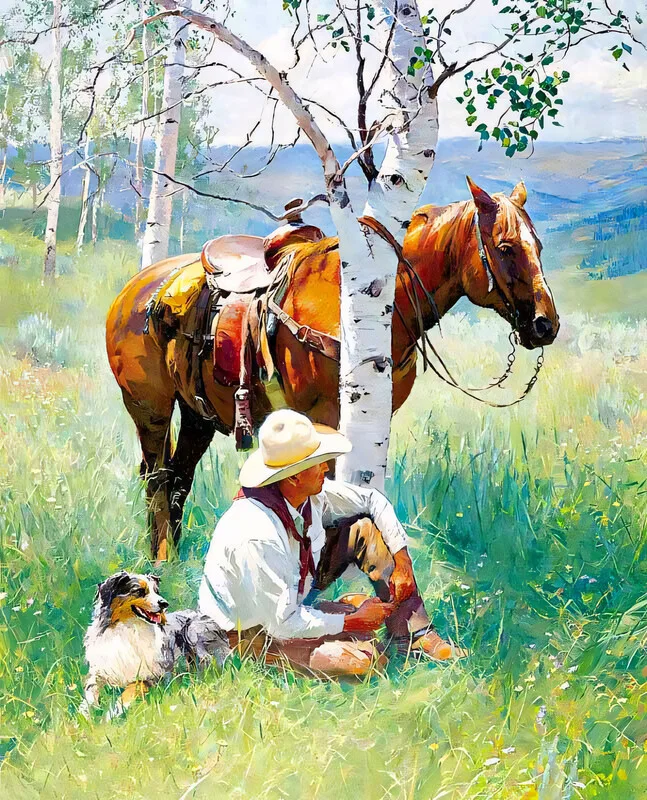 Poster A knight & his dog and horse rest under a tree