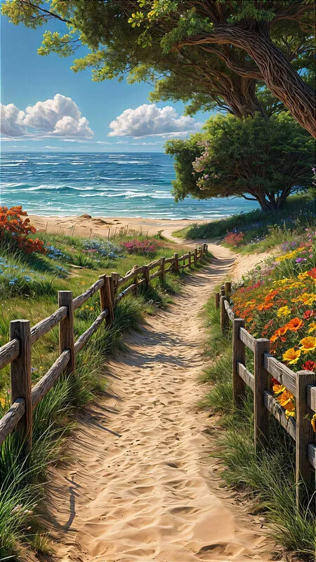 Poster A sandy path leads to a beautiful beach, landscape wall art