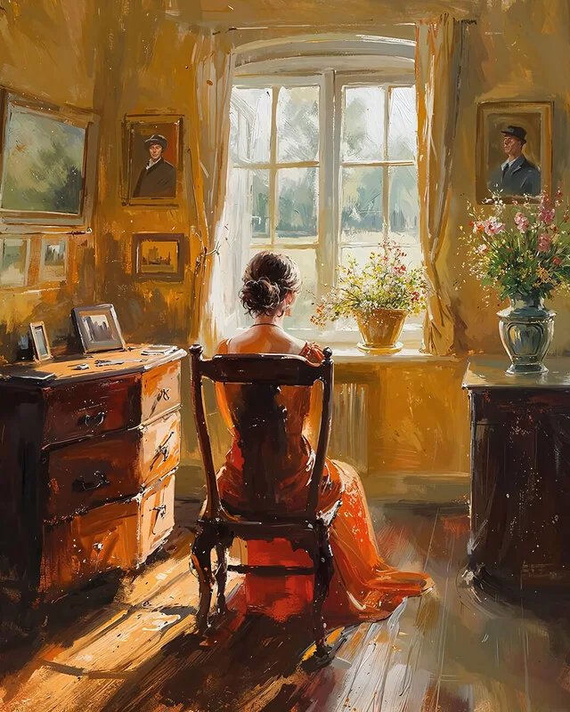 Canvas Print A woman sits in a chair and looks out the window, wall decor