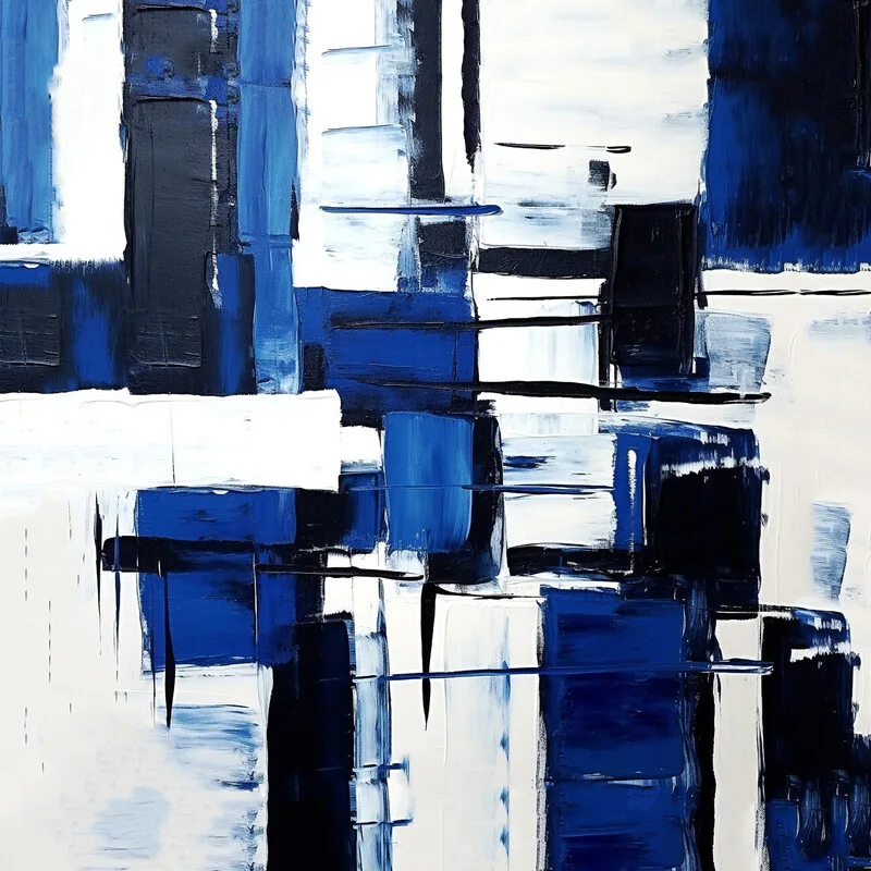 Canvas Print Abstract expressionism geometric grid black white & blue