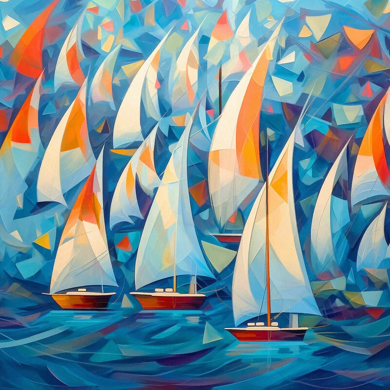 Canvas Print Abstract sailboats in the sea, white triangular sails