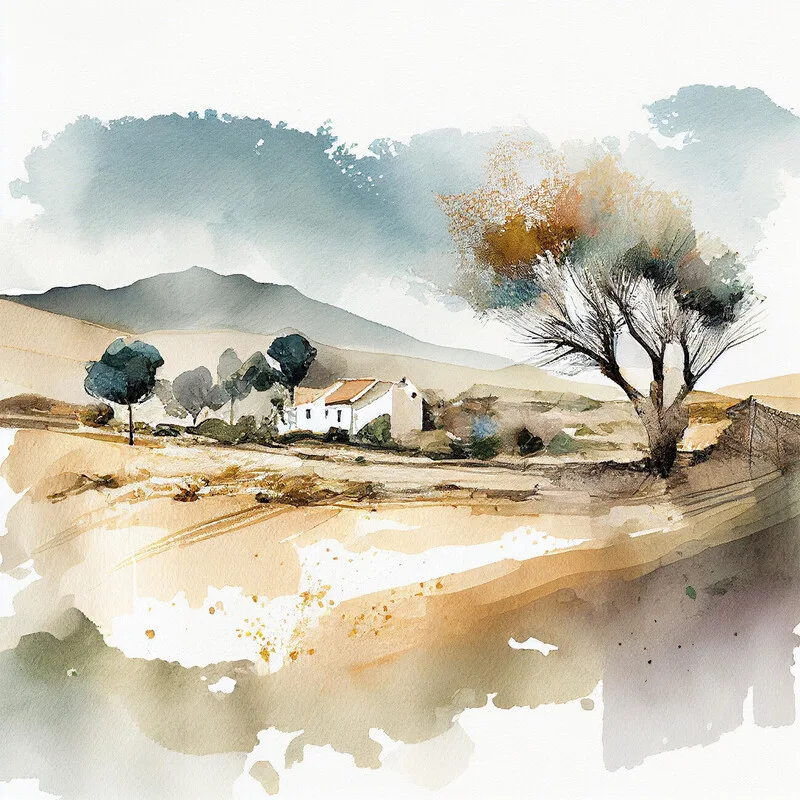 Sticker Abstract watercolor countryside landscape, wall art prints