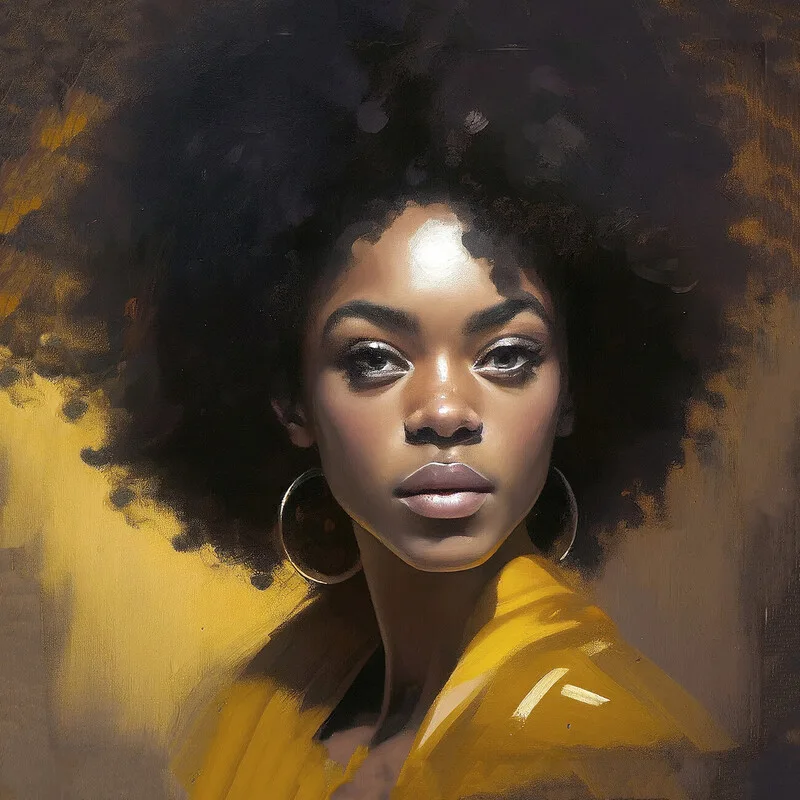 Sticker African Girl Portrait, oil painting canvas, print on demand