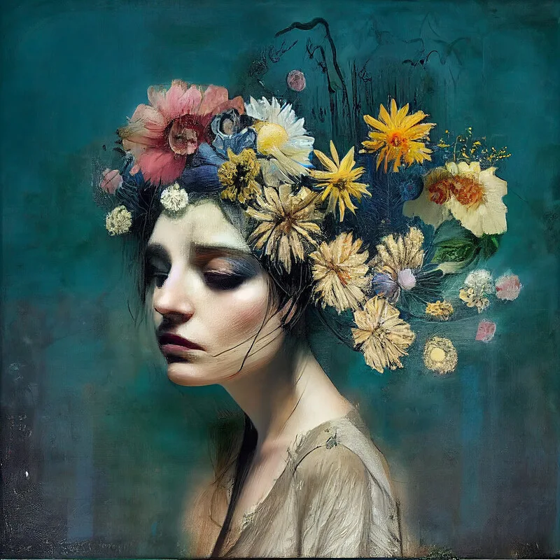 Poster Beautiful girl & flowers, Abstract painting, Wall Art prints