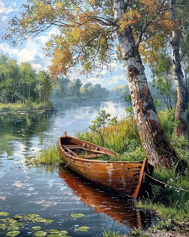 Canvas Print Beautiful Landscape with a River & boat, Canvas Wall Decor
