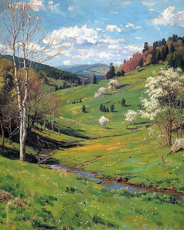 Sticker Beautiful Landscapes Green Plateaus in Spring, wall decor