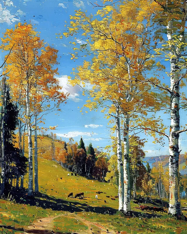Sticker Birch Forest Landscape with Vibrant Foliage, wall decor