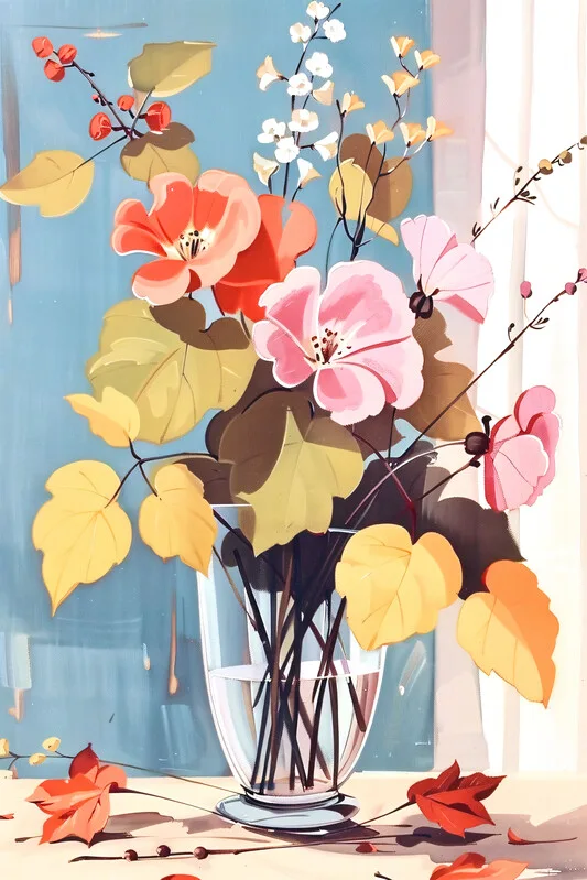 Sticker Boho flowers and leaves in vase, Wall Decor You'll Love