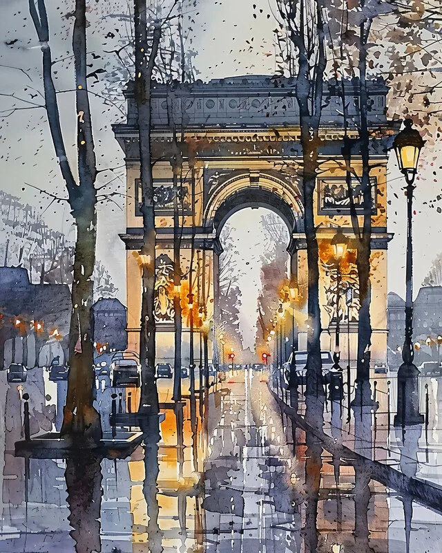 Sticker Champs Elysées Paris in winter, Watercolor painting