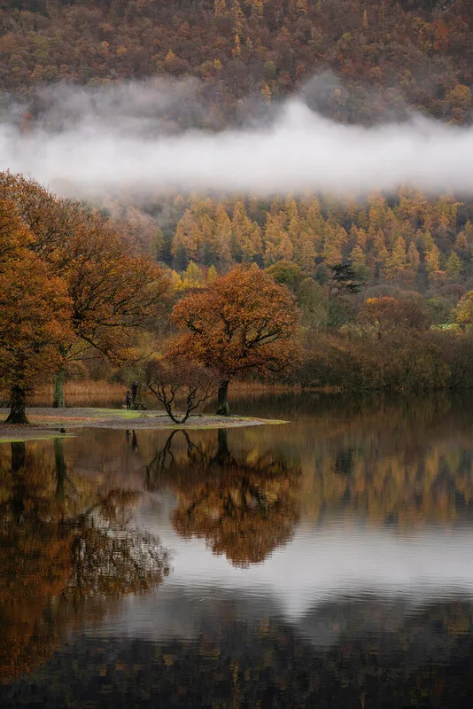 Sticker Cloud inversion and autumn trees over Derwentwater lake