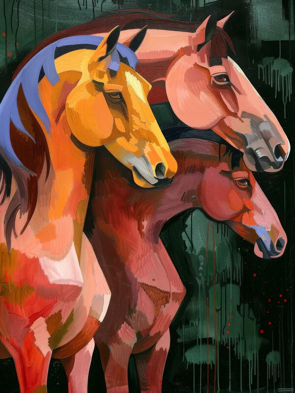 Poster Colorful Horse Portrait, Franz Marc Painting style