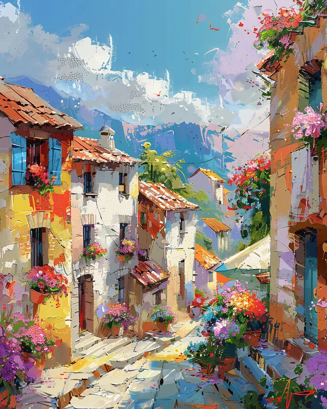 Canvas Print Colorful houses, traditional city painting, wall art prints