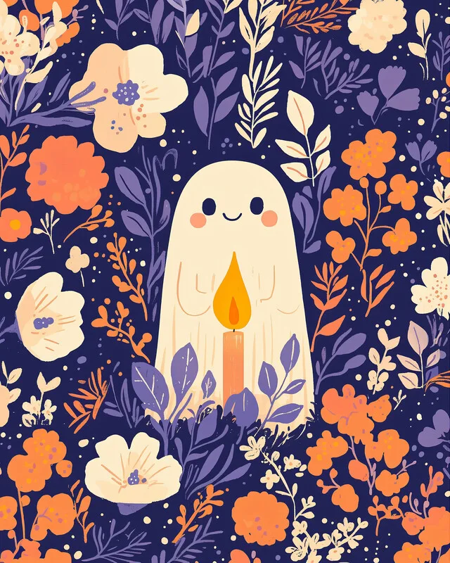 Poster Cute Vintage Floral Ghost With Flowers, Boho wall decor