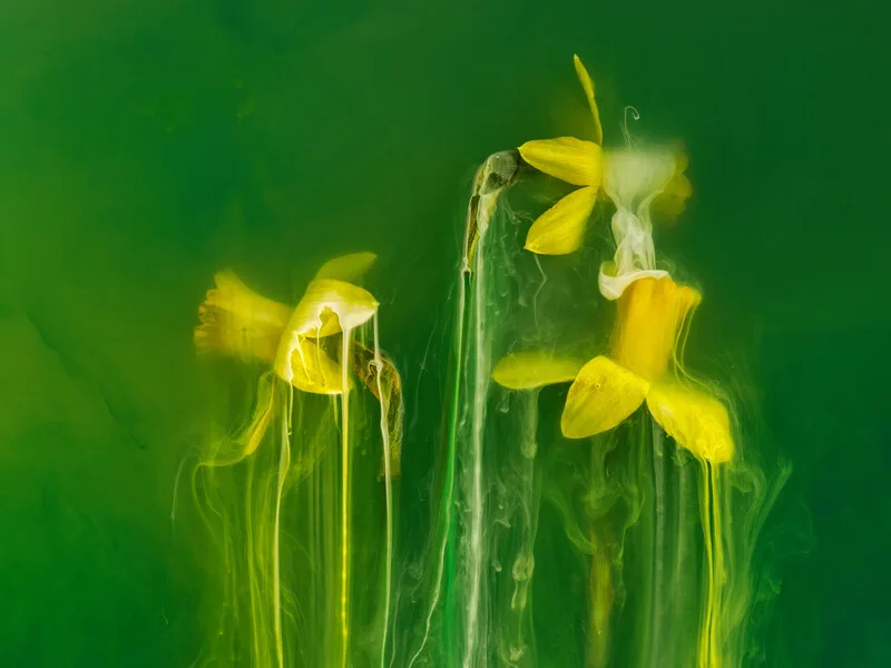Sticker Daffodils submerged in water with green and yellow inks