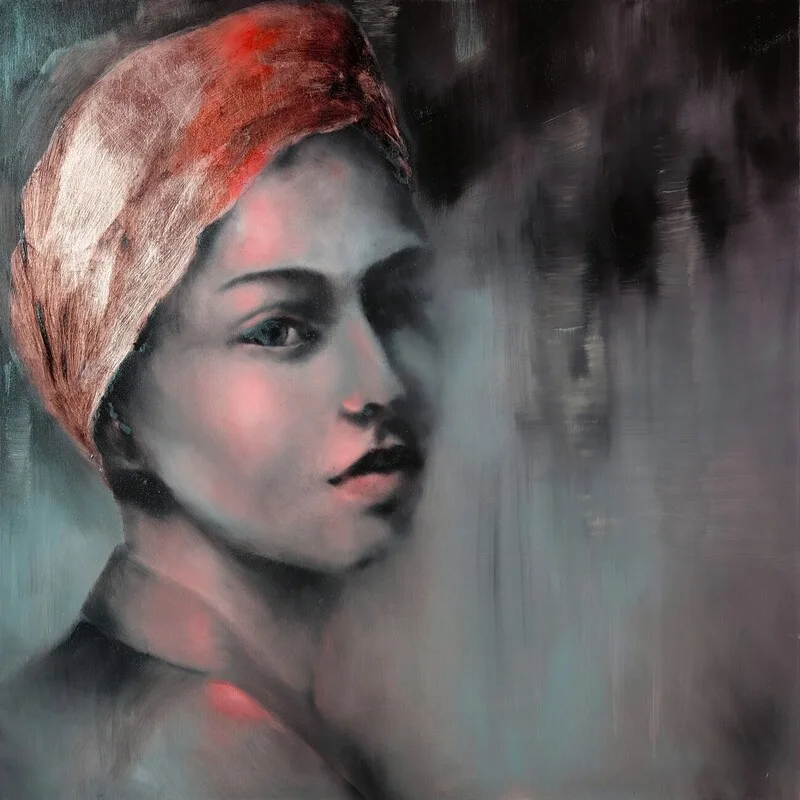 Canvas Print Das Mädchen mit dem goldenen Tuch im roten Licht