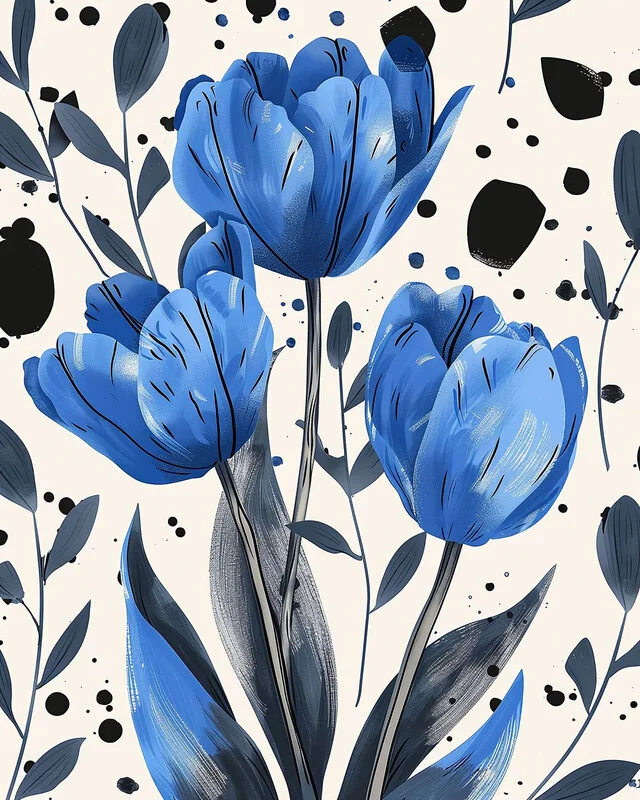 Canvas Print David Tulips drawing in blue, Botanic wall art prints