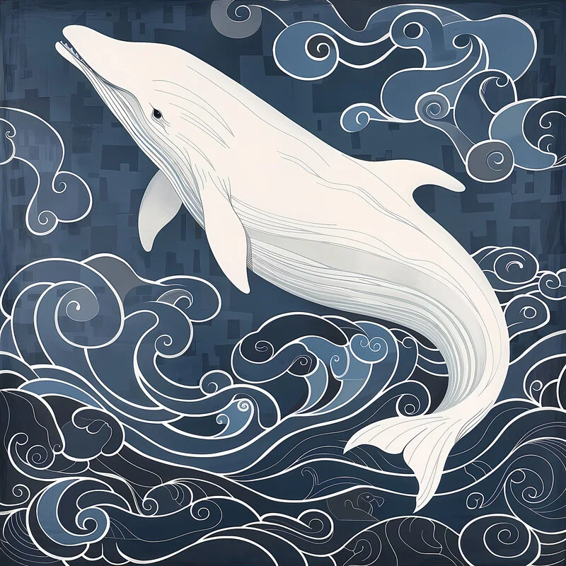 Canvas Print Dolphin in a surreal blue background, nautical sea wallpaper