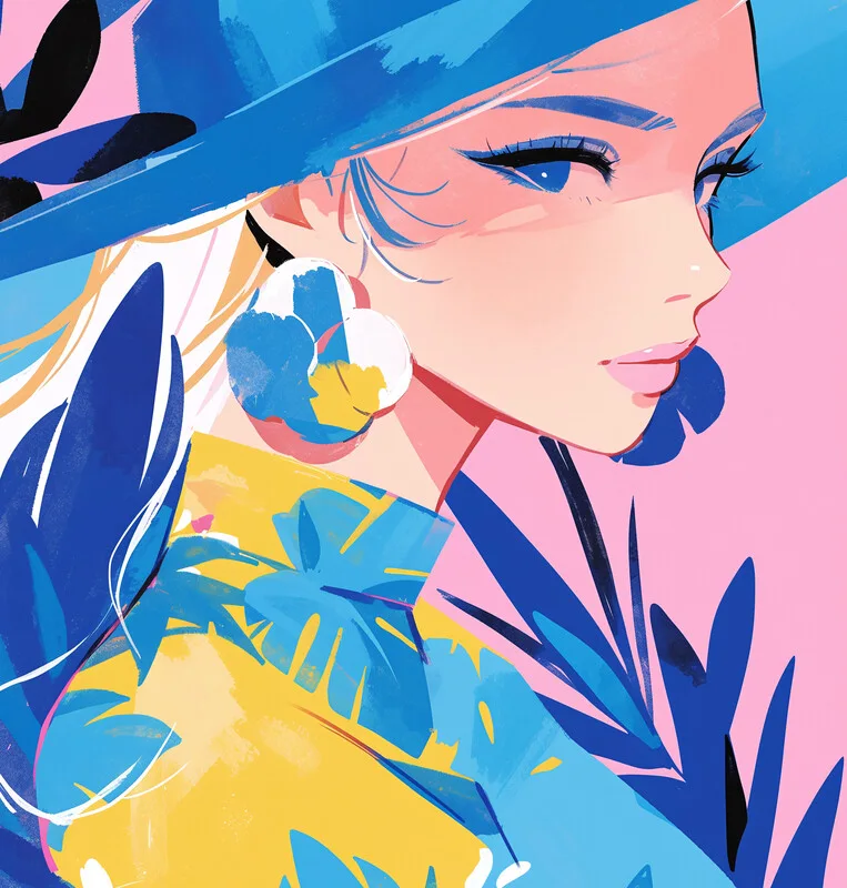 Sticker Elegant fashion lady wearing a hat simplified flat Wall art