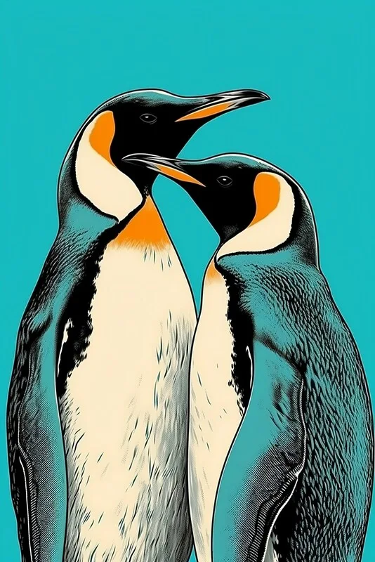 Poster Emperor penguins in a touching head to head embrace