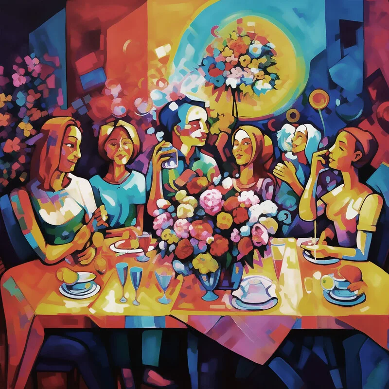 Canvas Print Family dining party, kitchen room decor, Abstract painting