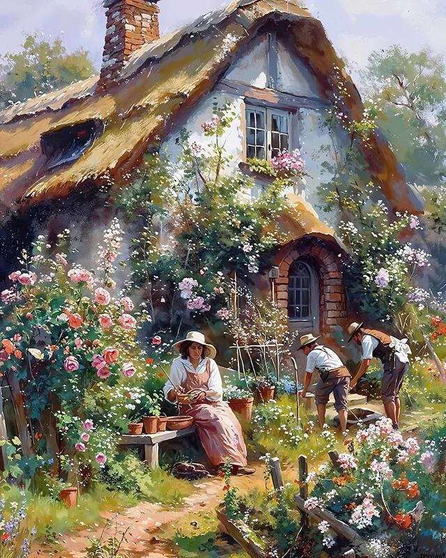 Sticker Farmers in Front of Their Traditional Countryside Homes