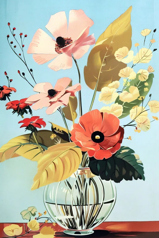 Sticker flowers & leaves in vase, Wall Decor for Room