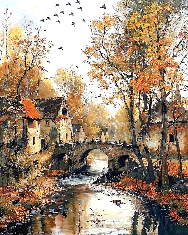 Sticker Historic House and Bridge Crossing a River, wall decor