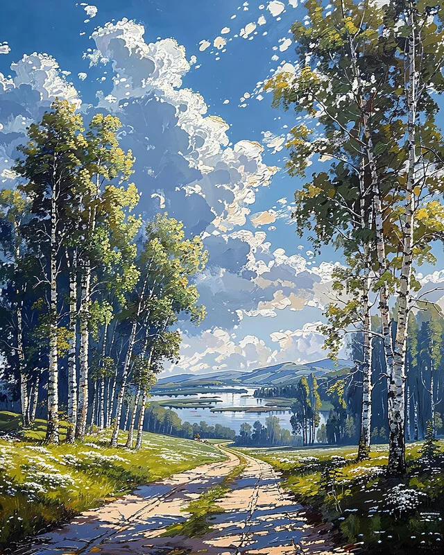 Poster Impressionist Oil Painting of a Large Autumn Landscape with