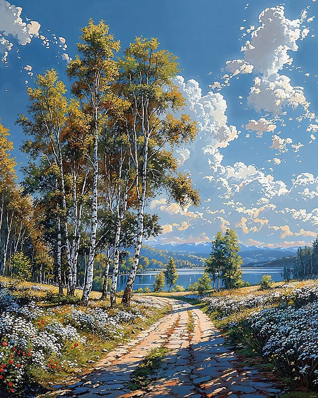 Poster Impressionist Oil Painting of a Large Autumn Landscape with