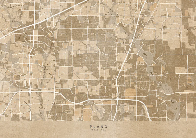 Poster Map of Plano (TX, USA) in sepia vintage style