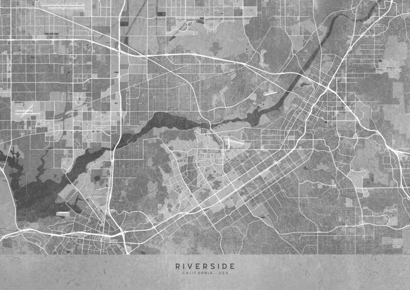 Canvas Print Map of Riverside (CA, USA) in gray vintage style