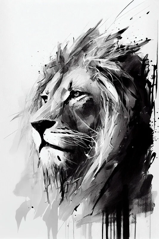Canvas Print Minimalist sketch of a black & white lion, animal Art prints