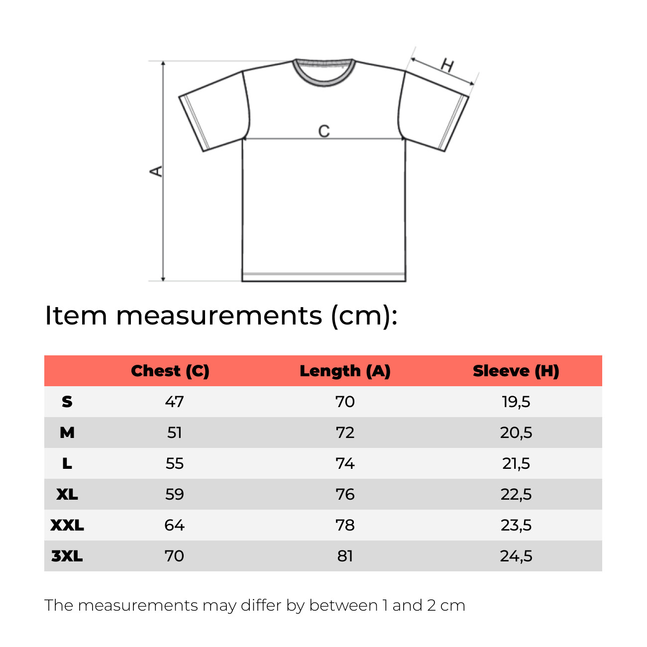 Men's Regular T-shirt is a great choice for men who value comfort and quality. It is pleasantly soft to the touch, made of 100% cotton with a weight of 160 g/m². The shirt is sewn without side seams, making it fit most body types. The silicone finish enhances its durability. For the longest lifespan, we recommend washing with similar colors, inside out, at a maximum water temperature of 40 °C. The shirt is printed using modern DTF technology, ensuring vibrant colors, sharp details, and high wash resistance, so your favorite design will stay looking new for a long time.
