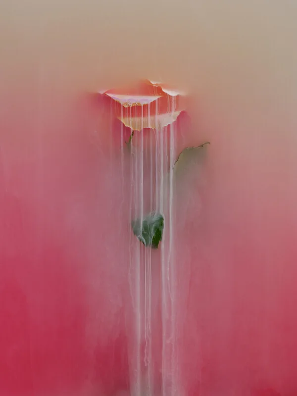 Sticker Orange rose flower submerged in water, milk and inks