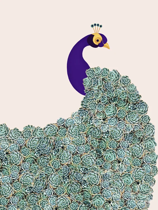 Peacock in succulents