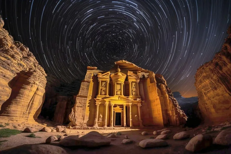 Sticker Petra city, Jordan Al Khazneh, Night Circumpolar Timelapse