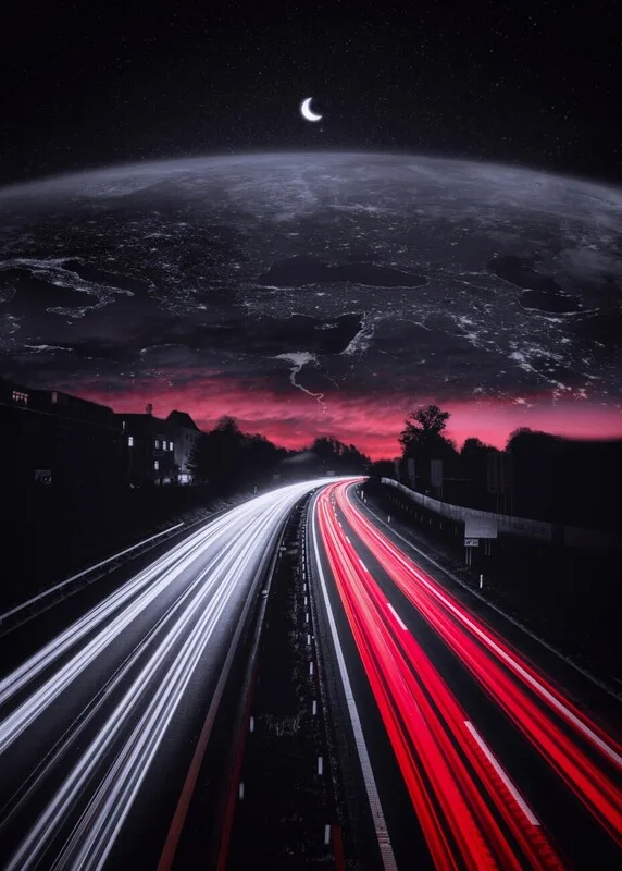 Poster Traffic road to sky earth and mini crescent moon