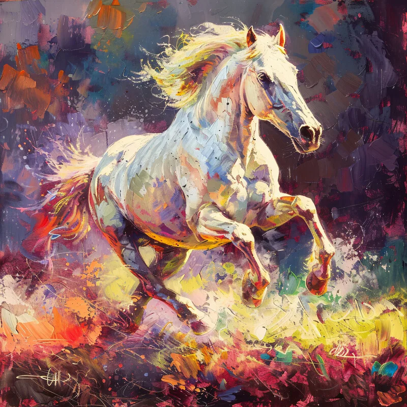 Poster Vibrant Rendering of a White Stallion Galloping, wall mural