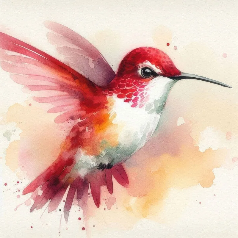 Poster Vibrant Watercolor Hummingbird, Colorful Nature wall decor