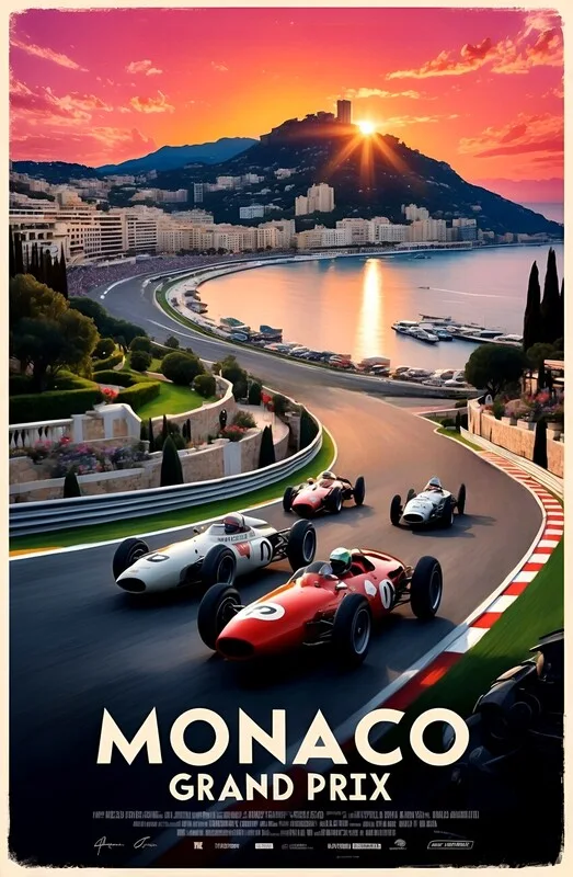 Sticker Vintage-Inspired Monaco Grand Prix Illustration