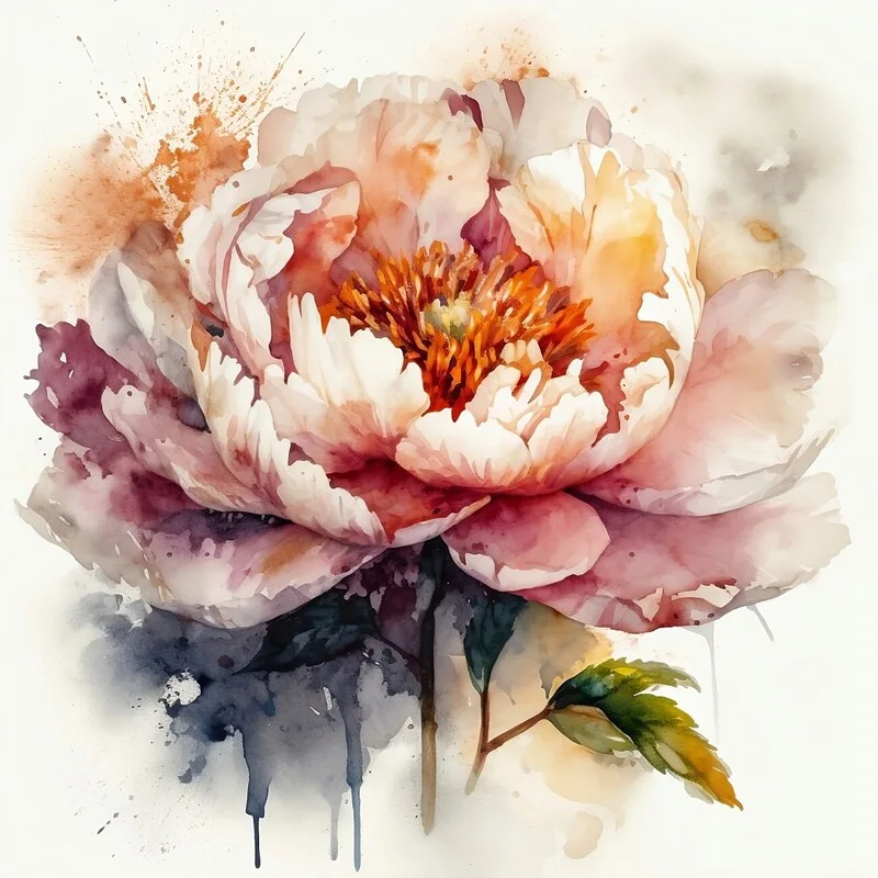 Poster watercolour painting of Split-Complementary-Colors Peony,