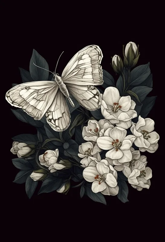 Poster White Moth With White Jasmine