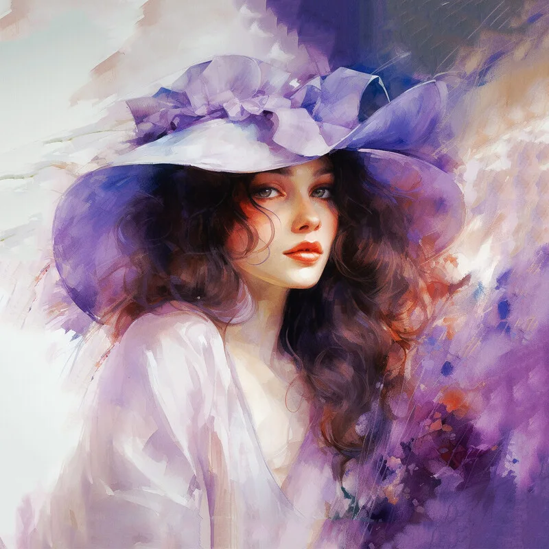 Canvas Print Woman portrait painting, Purple hat fashion, art prints