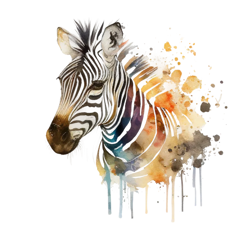 Zebra, watercolor image, minimalist, warm colors