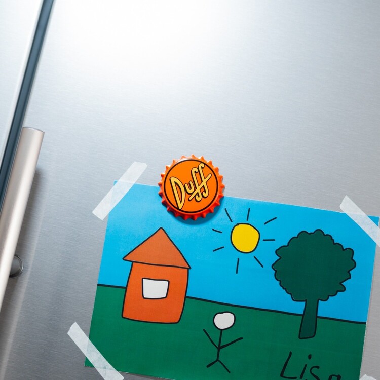 Enamel-finished magnet with a bottle opener in Duff Beer style. Several magnets on the back keep it firmly on your fridge or any other metal surface. A practical accessory that blends décor and function. You’ll open a bottle before you can say “Duff”.