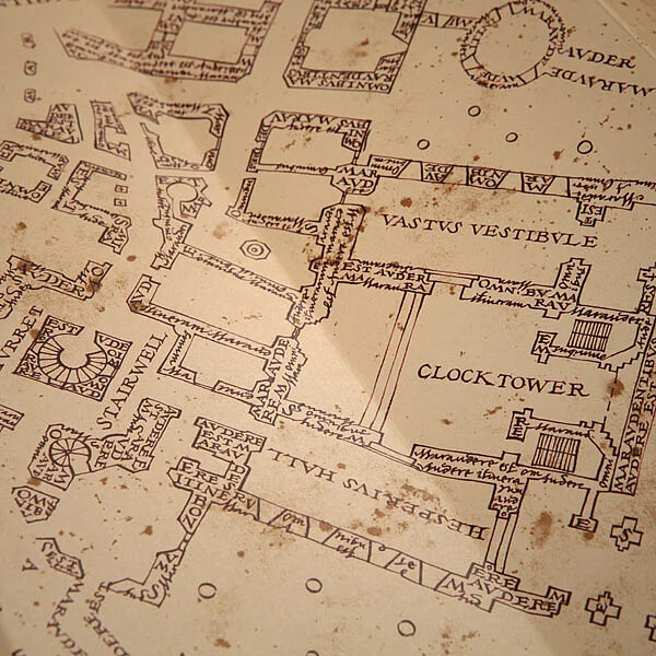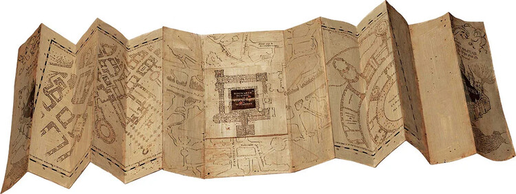 The magical Pobert's parchment plan measures 25 x 39 centimetres when folded and 174.5 x 39 centimetres when unfolded. You'll shine at the party with one of these!