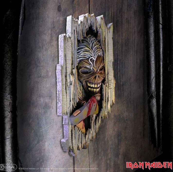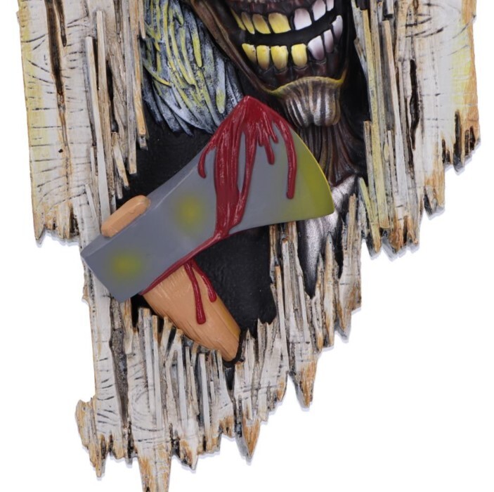 Show your allegiance to the Monsters of Rock with this electrifying Iron Maiden Eddie's Here Wall Plaque. Bring the relentless spirit of Iron Maiden's mascot Eddie to any space. Emerging through rugged wood with an axe in hand, Eddie is ready to unleash his fury. Crafted in the finest resin before being painstakingly hand-painted, this Iron Maiden Eddie's Here Wall Plaque will take centre stage in any space.