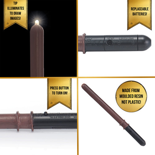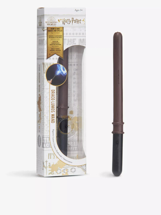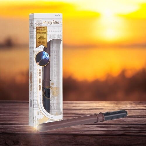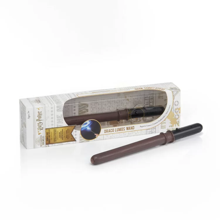 Draco Malfoy's glowing magic wand complete with LED light tip, activated by a hidden button on the handle. Measuring 18cm, it's ideal for younger fans aged 6 and up.