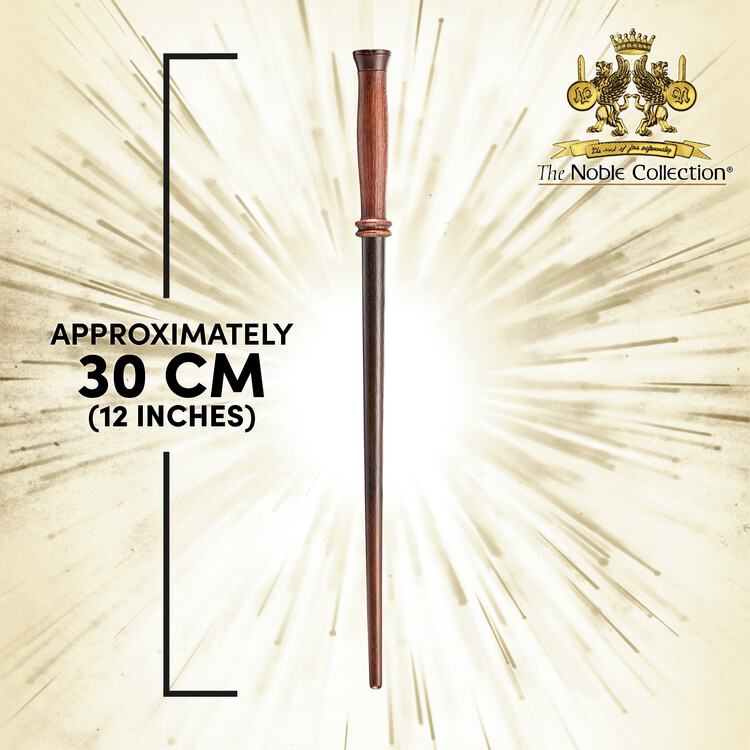 The Harry Potter wand in a box by Ollivander is a careful recreation of the wand used in the Harry Potter film series and is made of high quality materials. Each wand is hand painted to provide the most realistic experience possible. The original box has a velvet finish and a decorative ribbon. This accurate 1:1 scale reproduction measures approximately 38cm in length.