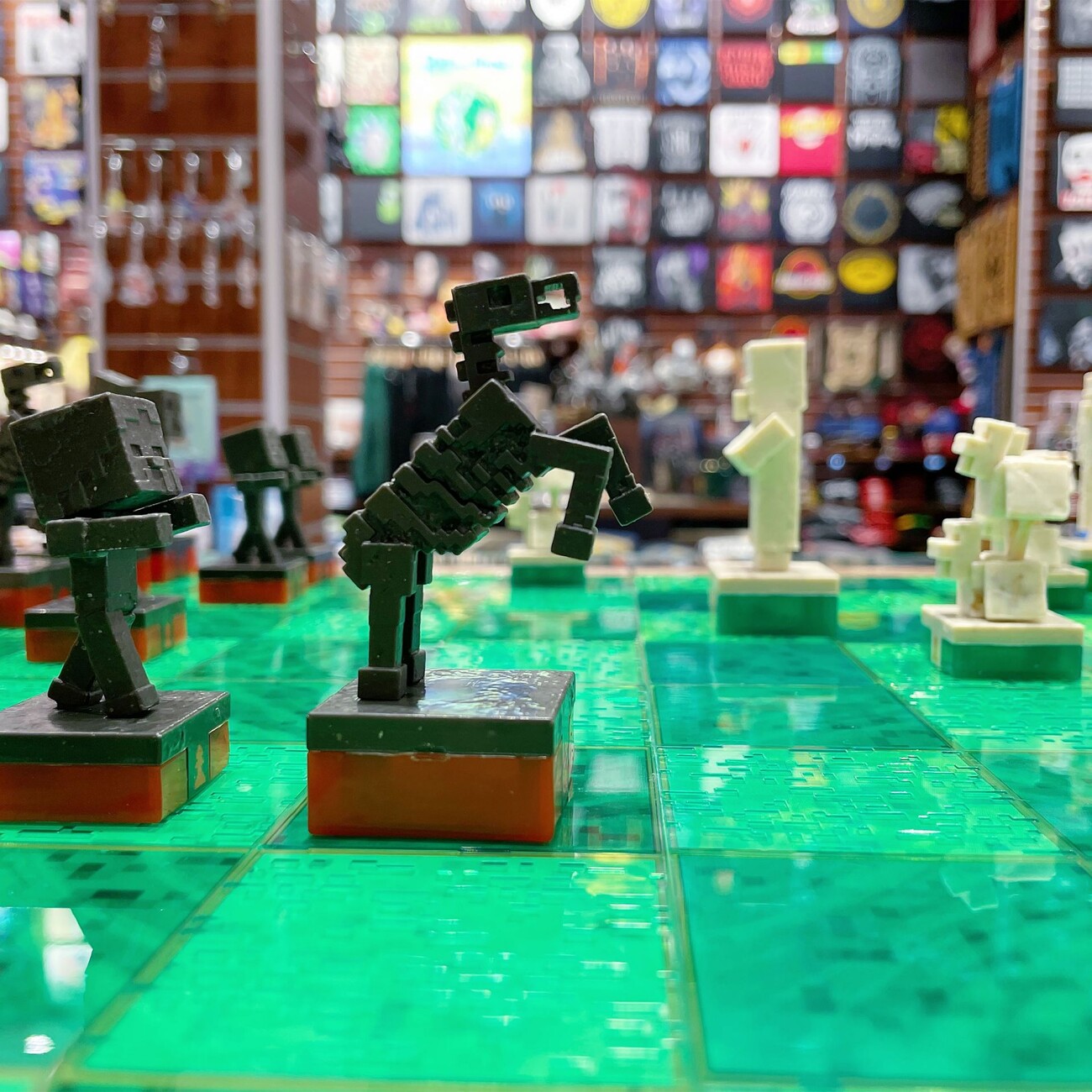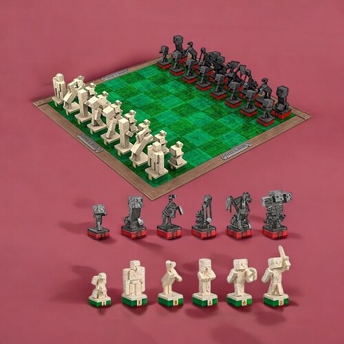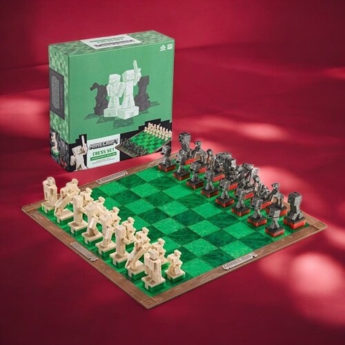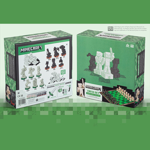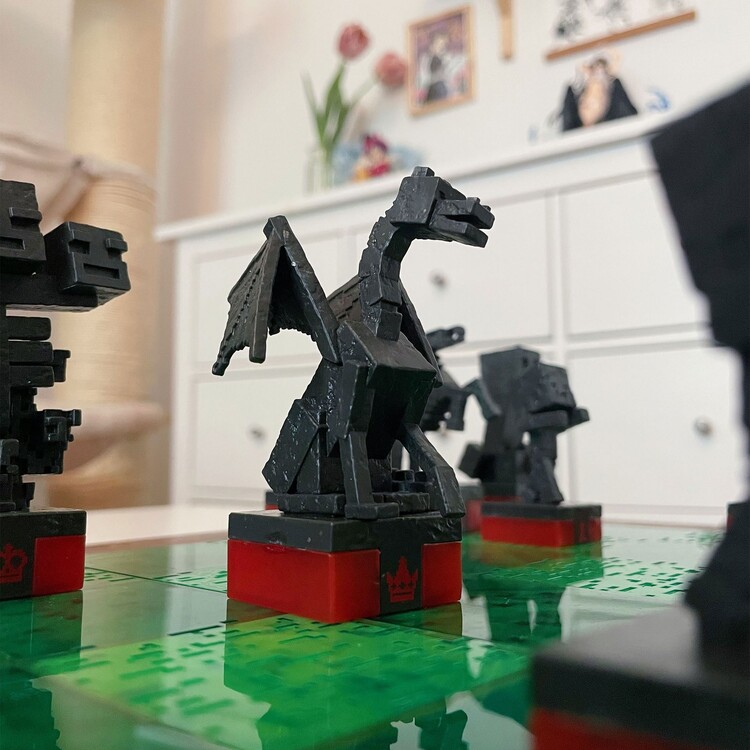 The award-winning luxury Minecraft chess set has a 46 cm large chess board and 32 pieces 10 cm high.